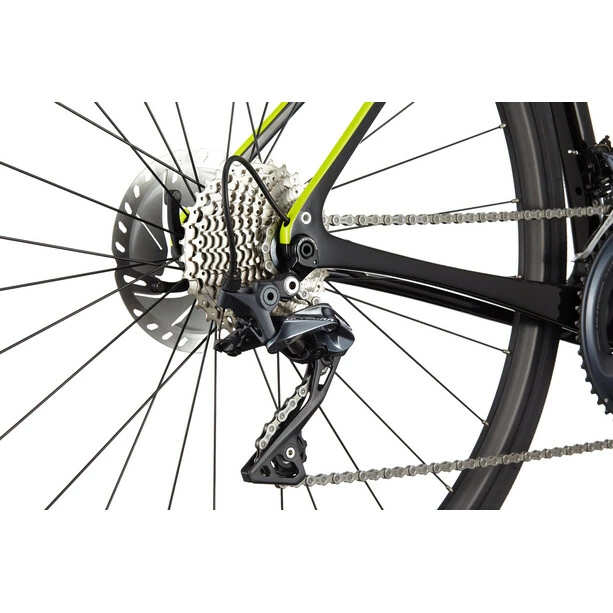 Leichte Carbon-Konstruktion. Subtiles aerodynamisches Shaping von Rahmen und Gabel. Größenspezifisches Design für perfekt abgestimmte Steifigkeit. Das alles zusammen ergibt eine Maschine, die gerne fliegt.