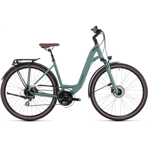 Das voll ausgestattete und auf höchsten Fahrkomfort ausgelegte Touring ONE bietet alles, was ein gutes Touring Bike ausmacht – Horizonterweiterung inklusive. Selbst steile Anstiege lassen sich mit der einfach zu bedienenden Shimano 3×8-Schaltung ganz enstpannt angehen, dabei wechselt man den Gang ganz leicht und geschmeidig per Fingerzeig vom Lenker aus. Auf dem Weg bergab ist auf die leistungsstarken Scheibenbremsen voll Verlass: Sie verzögern das Bike bei Nässe um einiges besser – und damit sicherer – als normale Bremsen. Außerdem mit im Feature Paket des Touring ONE: lange Schutzbleche, der formschön integrierte Gepäckträger, ein Seitenständer und eine dynamogespeiste Lichtanlage. Dazu gesellt sich jede Menge Fahrkomfort in Form einer Federgabel und einer gefederten Sattelstütze, die ruppigen Untergrund geschmeidig ausbügeln. Ob kurze Stadtfahrt oder längerer Ausflug ins Grüne – das Touring ONE steht bereit!