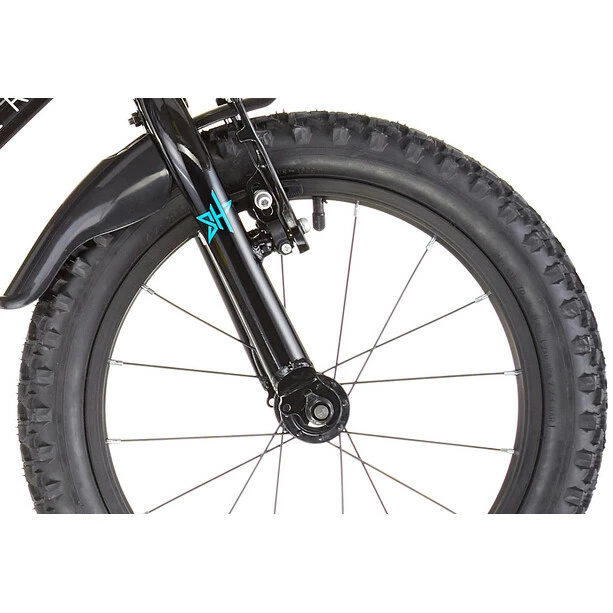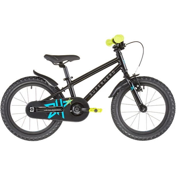 Das Superhero protzt mit griffigen, profilierten Reifen, Rizer-Bar-Lenker, stylischen Motocross-Schutzblechen und Schnellspanner an der Sattelstütze – ganz wie bei den Großen. Es setzt auf eine leichtgängige V-Brake am Vorderrad und den bewährten Rücktritt am Hinterrad, um den Vortrieb der jungen Heißsporne in Zaum zu halten. Eingang-Antrieb mit großem Kettenschutz ist alles, was man auf diesem Bike braucht. So bleiben die kleinen Bike-Helden Herr der Lage und obendrein die Hosenbeine sauber.